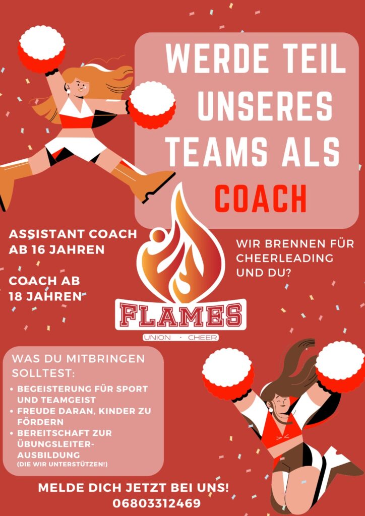Unsere Cheerleader: Die Union Flames gibt es bereits seit vielen Jahren. Unsere Trainerinnen Sandra und Bettina sind seit ihrem neunten Lebensjahr selbst Teil des Teams. Seit 2014 leiten sie mit viel Herzblut und Engagement die Gruppe und fördern seitdem kontinuierlich die Entwicklung der Kinder und Jugendlichen.