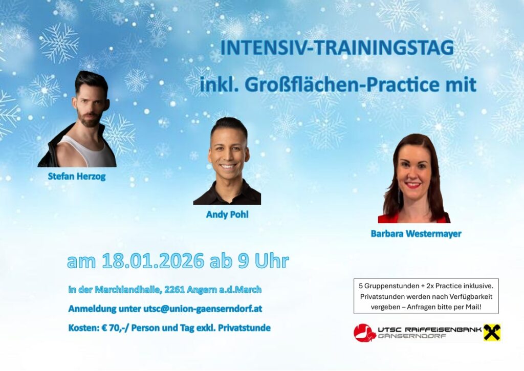 Anmeldung zu unserem Workshop-Tag ist ab sofort per Mail unter utsc@union-gaenserndorf.at möglich. Privatstunden werden nach Verfügbarkeit auf Wunsch vergeben.